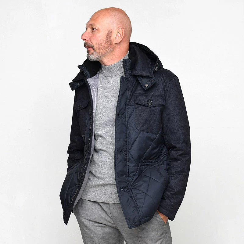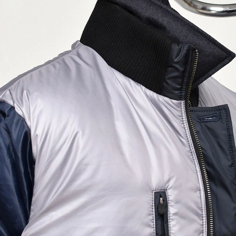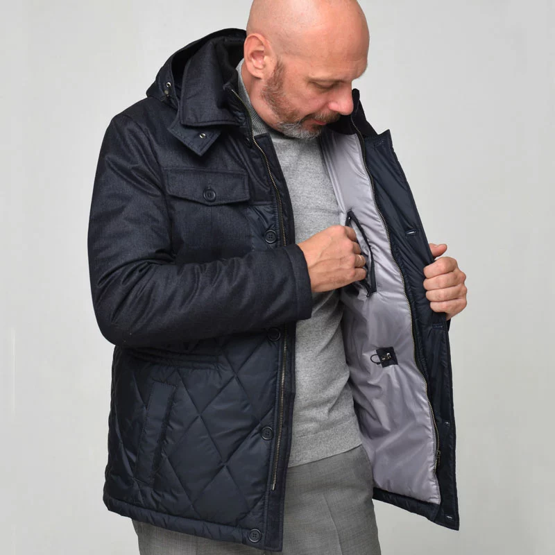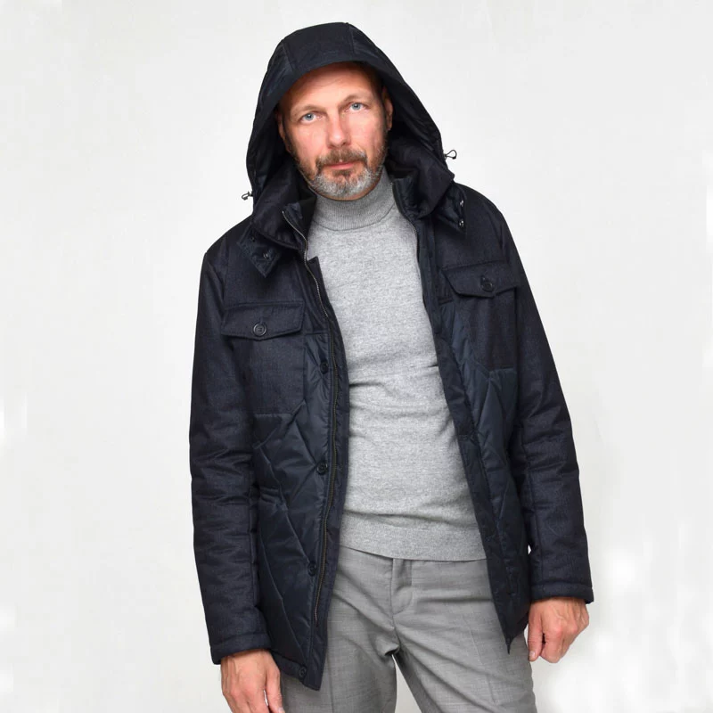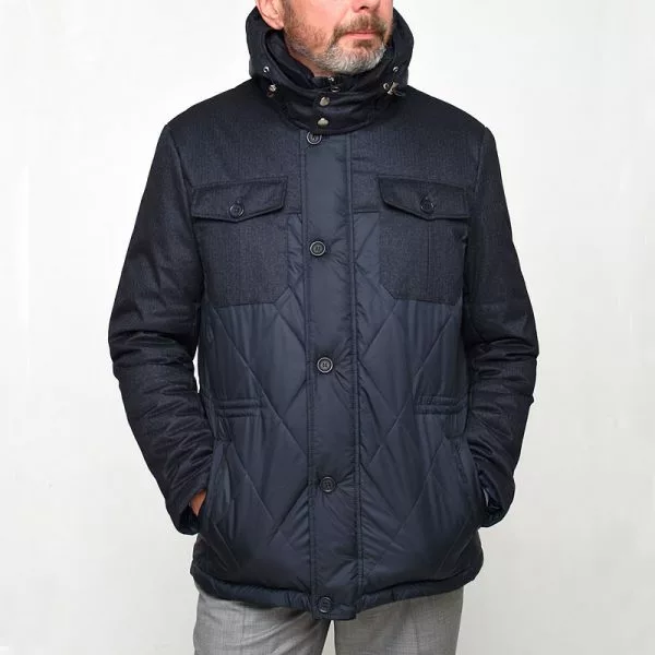 Зимняя стеганая куртка с комбинированием двух тканей — мембрана