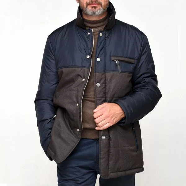Куртка с трендовым сочетанием двух фактур ткани и двух цветов: