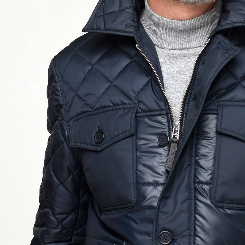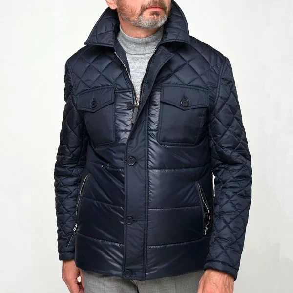 Зимняя мужская куртка SWIFT — это оригинальное комбинирование двух видов стёжки: верхняя часть куртки и рукава матовая стёганая ткань, спина и перед — глянцевая ткань с крупной стёжкой.