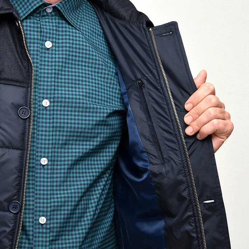 Утепленная мужская куртка SWIFT-M — это оригинальное комбинирование двух видов ткани: верхняя часть куртки и рукава ткань матовая мембрана ( непромокаемая ткань на мембране с эффектом джинсовой ткани), спина и перед — матовая плащевка с крупной стёжкой.